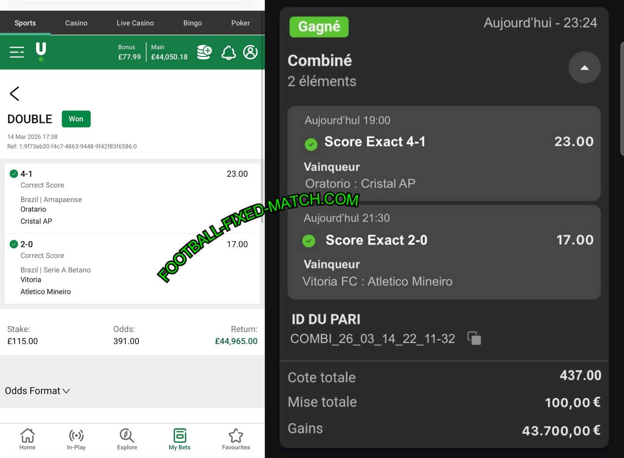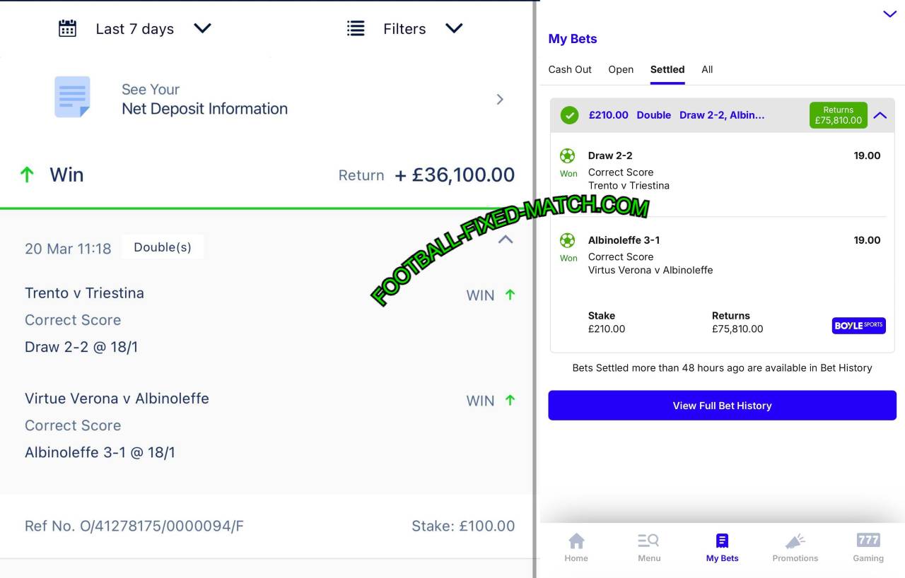 | BETTING OFFER: | CORRECT SCORE – FIXED MATCHES | HALFTIME FULLTIME – FIXED MATCHES |